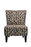 Enhance your home decor with this armless chair in this contemporary brown and seafoam blue geometric print. This updated transitional accent chair has a rolled broad back and deep seat cushion for extraordinary comfort. Ideal for everyday living. Armless design works great as an accent chair for a bedroom or living room. Sturdy hardwood frame construction. Tapered wood legs with a dark walnut finish. Poly-blend fabric is a mod print with shades of milk and dark chocolate brown with accents of seafoam blue and a mint green that is durable and easy to maintain . High resilient thick foam back cushion with a poly fiber wrap to ensure total comfort. Spaciously designed tapered seat cushion offers a wider surface to sit on and is ideal for smaller spaces. The perfect accent chair in any room - or use two side by side as to compliment any sofa. Easy assembly. Innovative engineering and design enables this chair to fit through doorways and narrow stairs. Extraordinary comfort, design and color. Eco-friendly and efficient product design uses less fossil fuel based components in construction and delivery. Chair dimension: 27-1/2-inch L by 32-inch W by 35-1/2-inch H. Seat dimension: 21-1/4-inch L by 26-inch W by 19-1/2-inch H. Welcome to Handy Living: Your kind of furniture. Right. Now. Their goal is simple: put full size upholstered furniture in a single box that will ship via common carrier to every doorstep. Handy Living has made everyday furniture exciting and different. They believe furniture should be stylish and fun. It should be affordable. It should be easy to deliver quickly and conveniently in a single box - and ridiculously easy to assemble. And it should be environmentally responsible. Handy Living - Thinking Inside the box..../ Handy Living Brown and Blue Make a Wish Halsted Armless Transitional Accent Chair / Brown Living Room